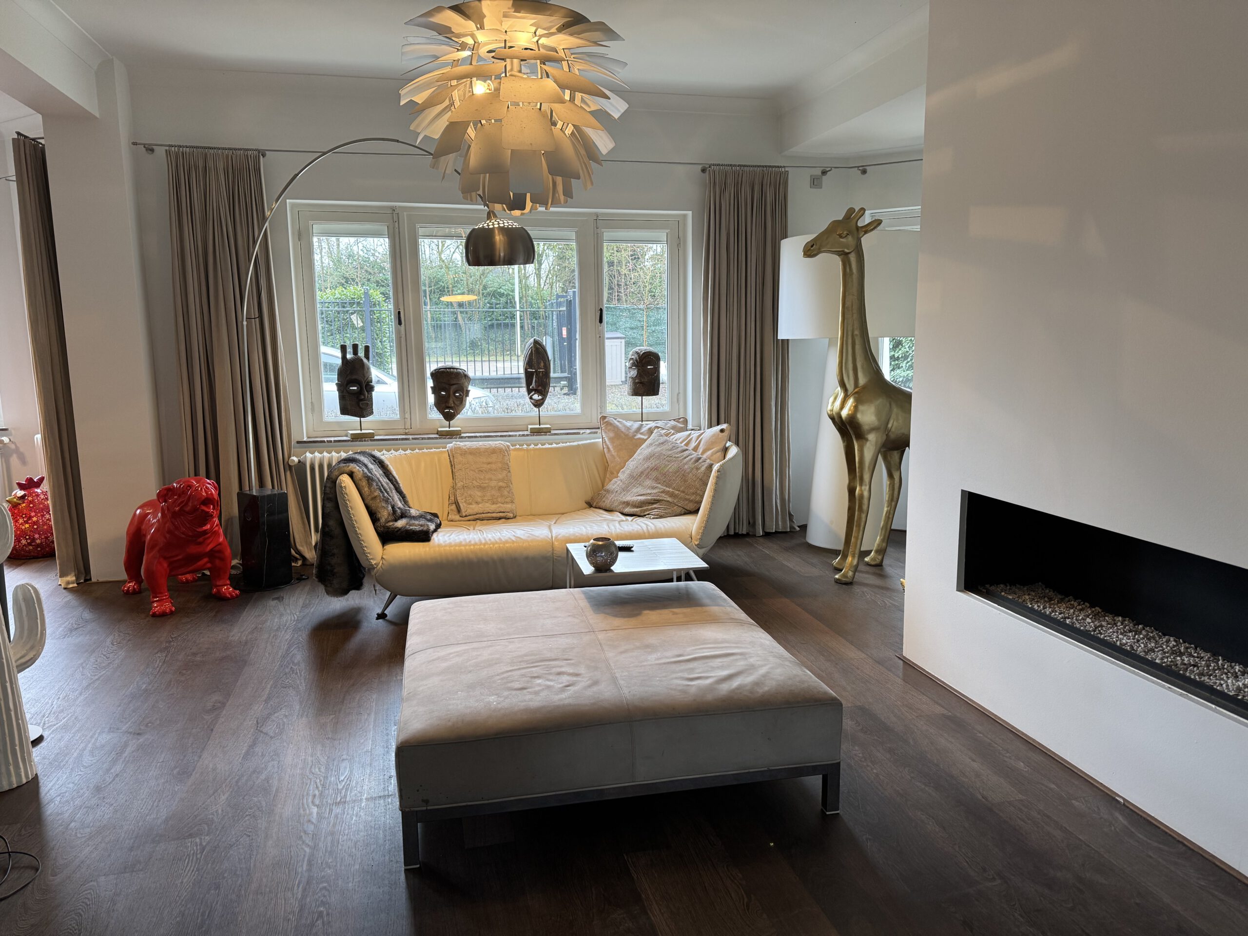 This property offers 5 bedrooms and 2 bathrooms, several living areas, including a cozy living room with a fireplace. The home is delivered move-in ready, featuring art and design furniture. Each bedroom is equipped with a smart TV and the whole house has WiFi.
