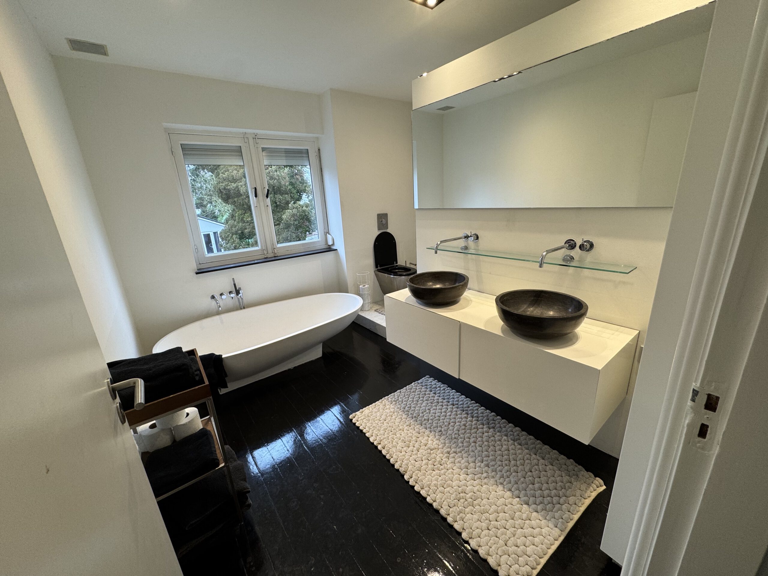 Rent: €3,350 per month, all-inclusive | Rental period: 6 to a maximum of 12 months | Also suitable for sharing, thanks to the two bathrooms and three toilets.